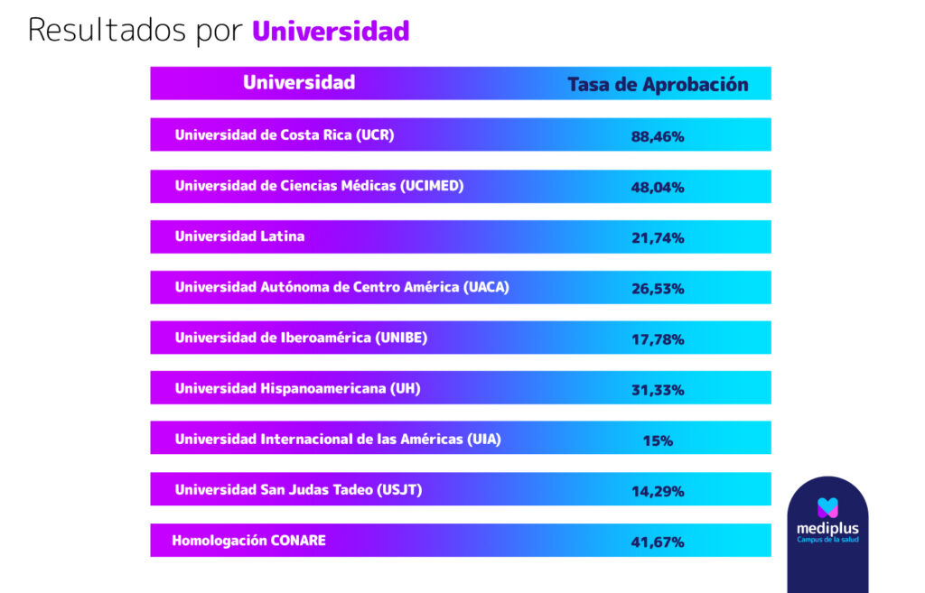 Primera convocatoria de este año (cuando hubo un repunte): 60,16% (según datos que se han manejado en comunicados y análisis sectoriales). Mediplus Costa Rica